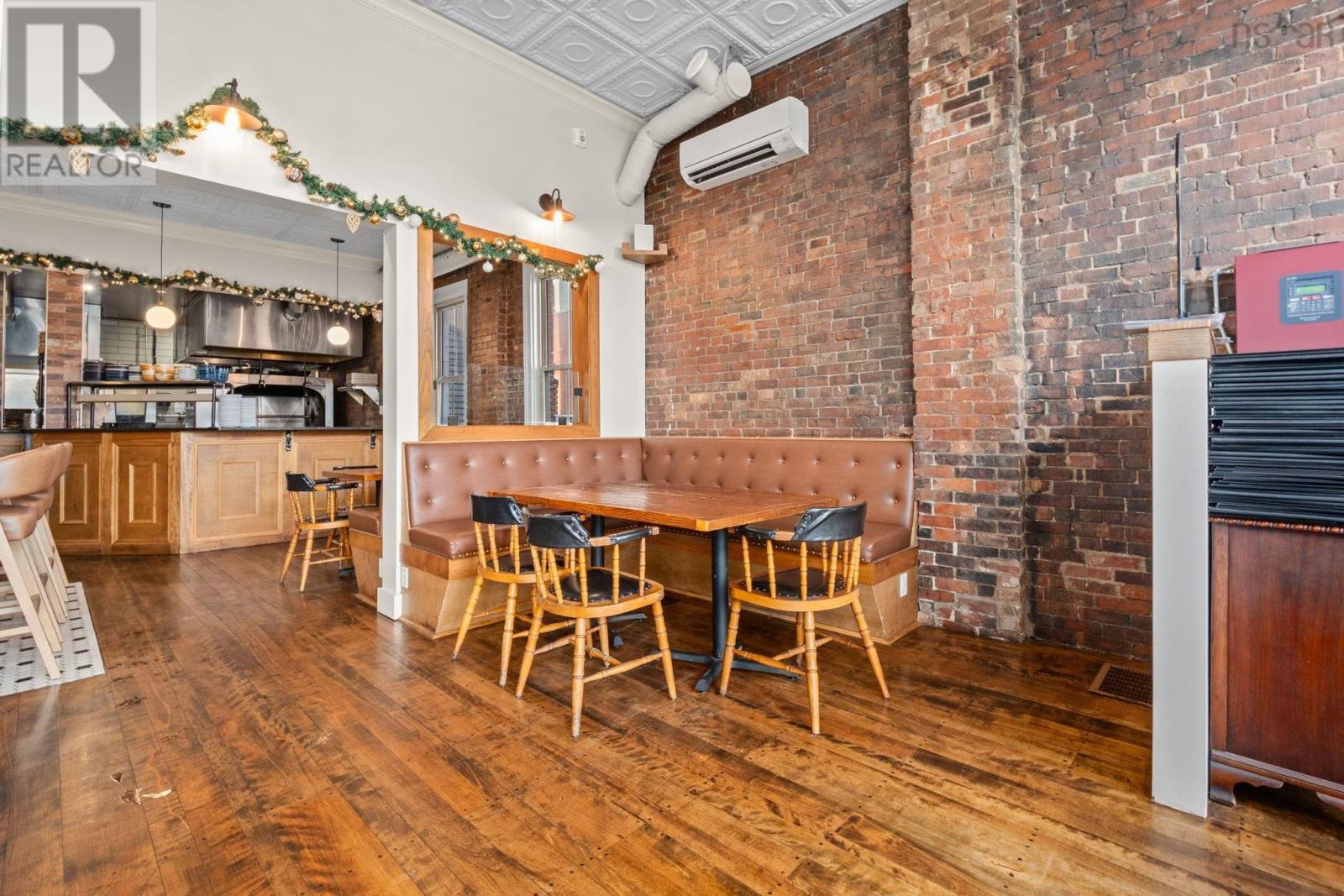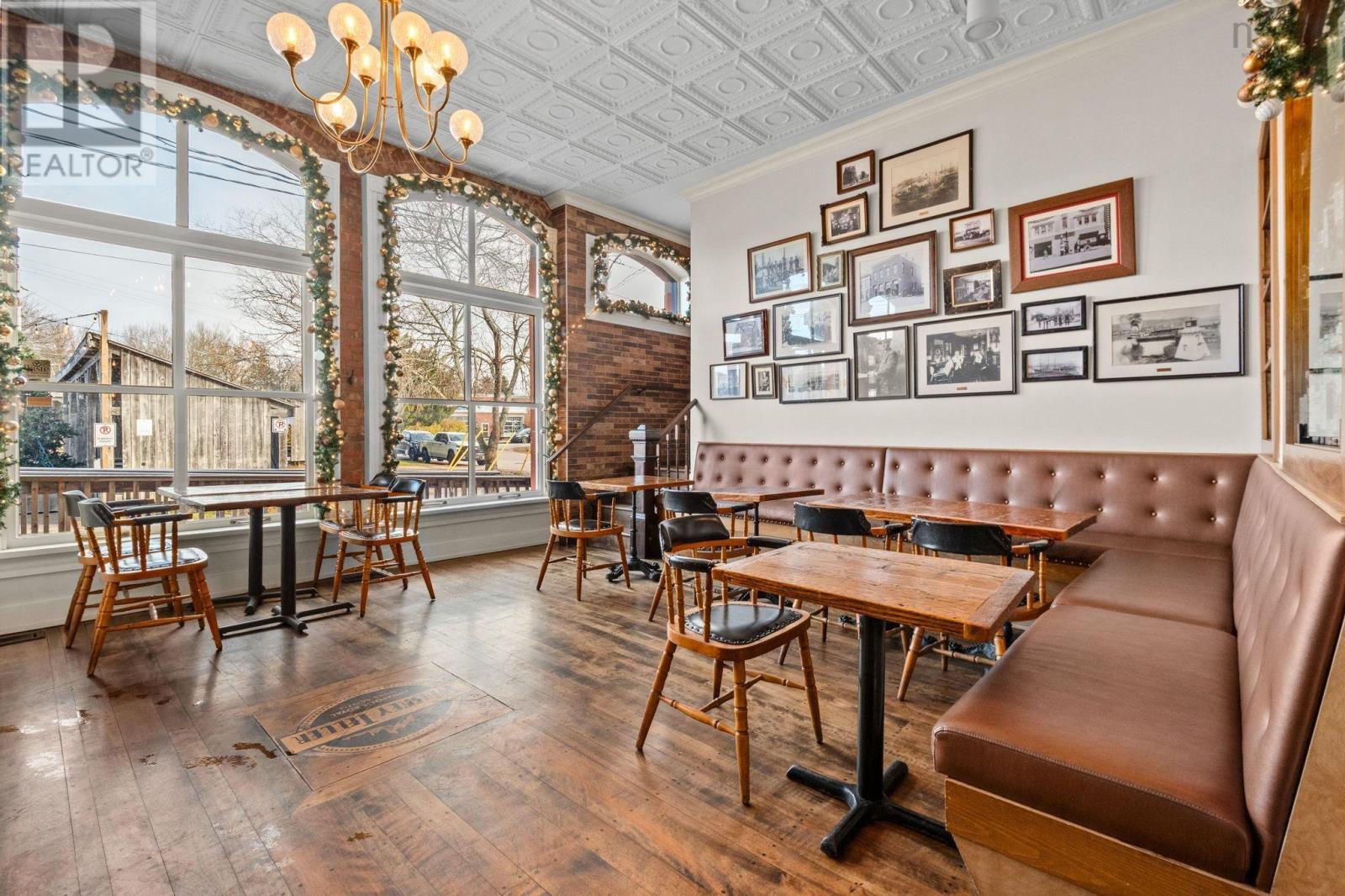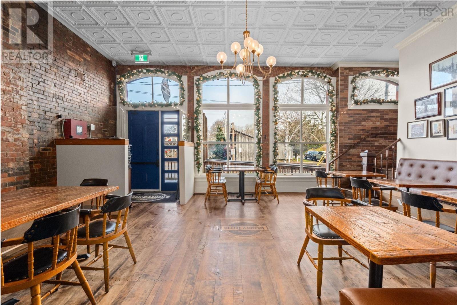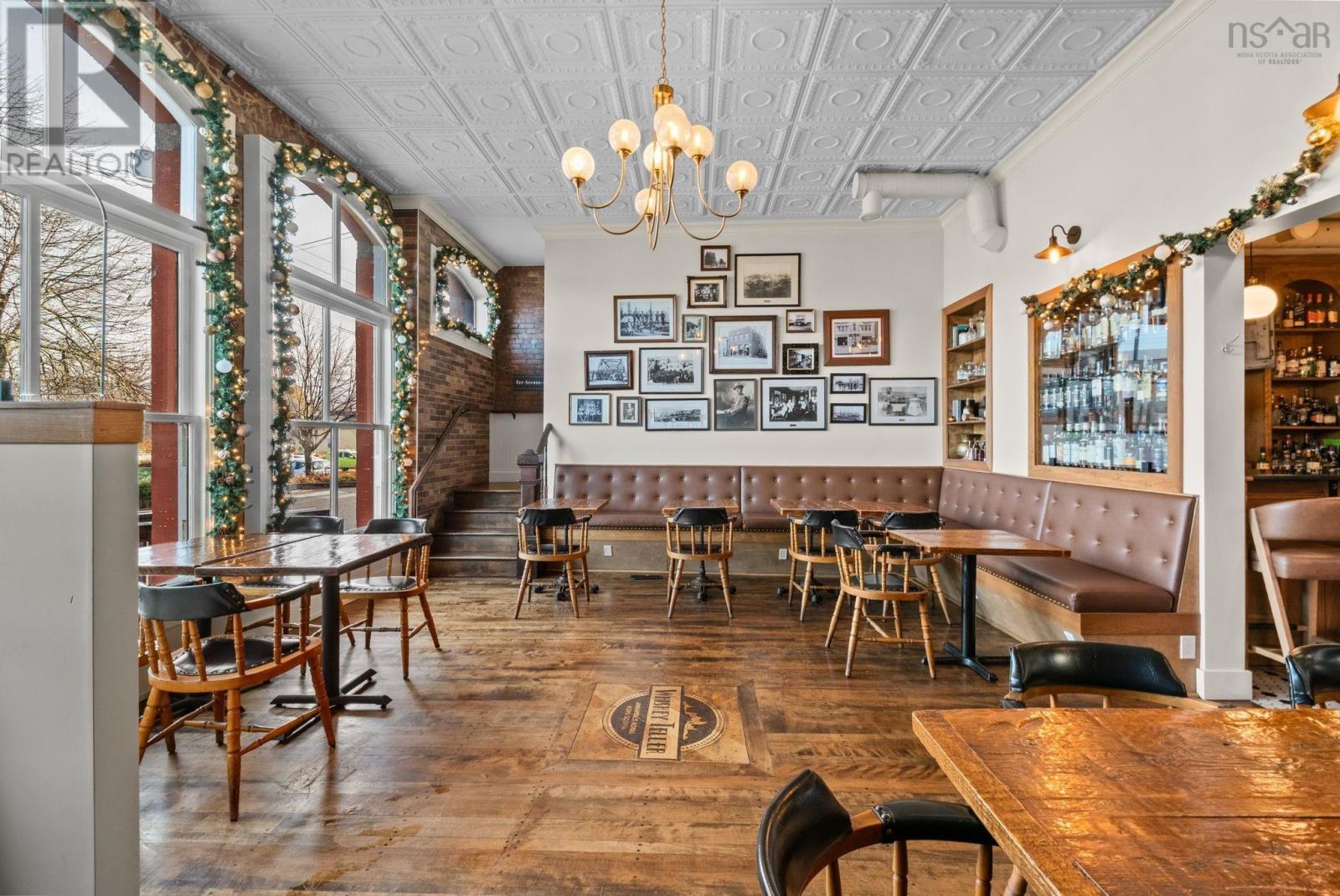 Located in the heart of historic Annapolis Royal, Nova Scotia, The Whiskey Teller occupies a beautifully restored heritage commercial building (circa 1884) that originally served as the Bank of Nova Scotia. The landmark property showcases exposed brickwork, soaring 18-foot ceilings, and rich hardwood floorsblending timeless architecture with modern functionality. In 2024, the building underwent a comprehensive interior renovation, bringing all electrical, plumbing, HVAC, and safety systems up to current fire and building codes. This renovation preserved the heritage charm while ensuring long-term operational integrity and compliance. The restaurant is positioned as a premium-casual dining destination with strong brand recognition, a loyal regional following, and an established online and social media presence. The signature wood-fire rotisserie and open-concept kitchen remain at the heart of its locally inspired menu. Seating includes 75 indoor seats plus approximately 70 patio seats during the summer season, offering excellent capacity for peak tourism traffic. The package also includes an adjacent two-storey building offering commercial office space on the ground floor and a spacious five-bedroom residential unit on the upper level, ideal for staff housing or additional rental income. Bring your restaurant vision to life without starting from scratch. This exceptional space is ready to welcome guests and create lasting memories well into the future.