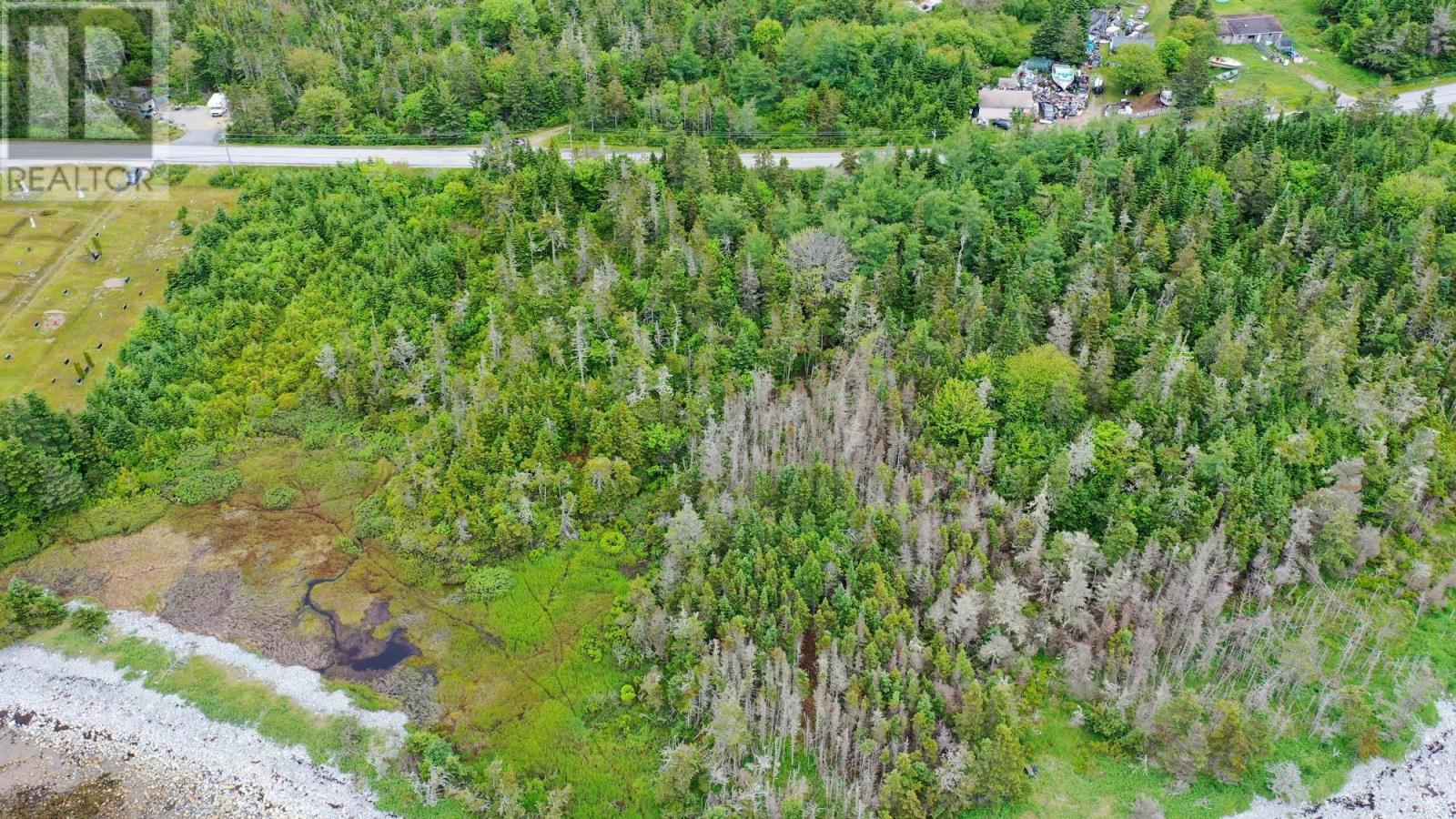 Take exit 28 at Clyde River, take Shore Rd to N.E. Harbour. Lot is on the right and sign on tree